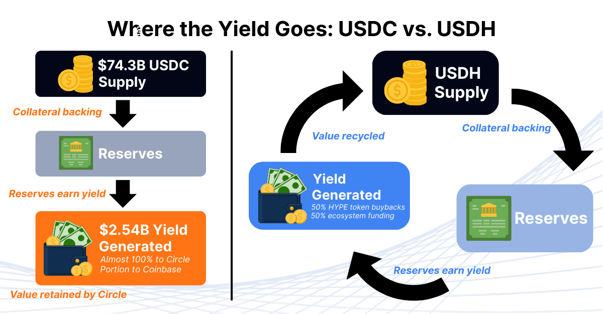 Hyperliquid's decision to launch its own stablecoin, #USDH, after holding more than $5.9B in USDC without access to the reserve yield, has sparked attention. But the bigger story is not about one protocol challenging Circle. It is about the fundamental economics of stablecoins, and how different models allocate the value of the reserves that back them.