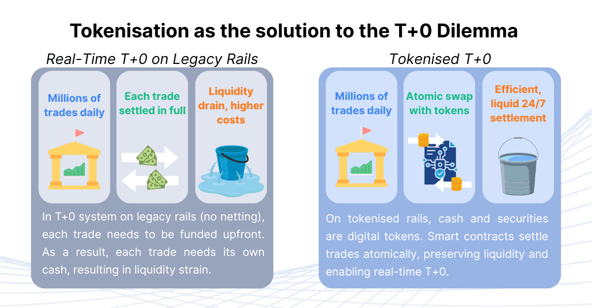 That line captures the reality: real-time gross settlement is not feasible on existing infrastructure. Tokenisation is not just an alternative: it is essential.