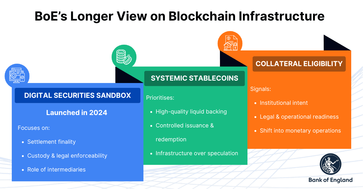 The announcement sits alongside BoE’s ongoing formal programmes on digital securities, stablecoins, and ledger-based settlement.
